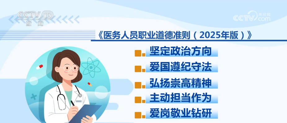 从坚决政治方向、爱国遵纪守法、宏扬崇高精神、主动担任作为、爱岗敬业研讨、遵循道德标准、坚持作风正派、共建调和联系、据守诚信原则、饯别廉洁自律10个方面,加强医务人员职业道德建造,要求各地树立常态化监督机制,疏通反应途径、及时处置问题。